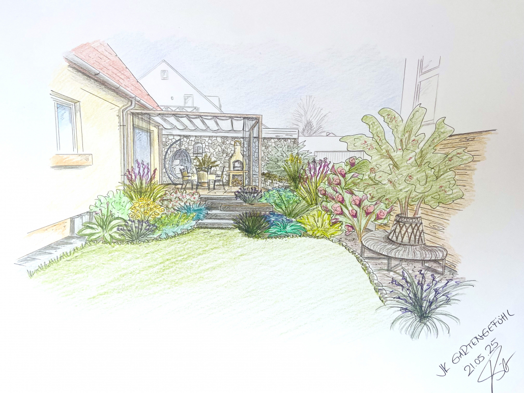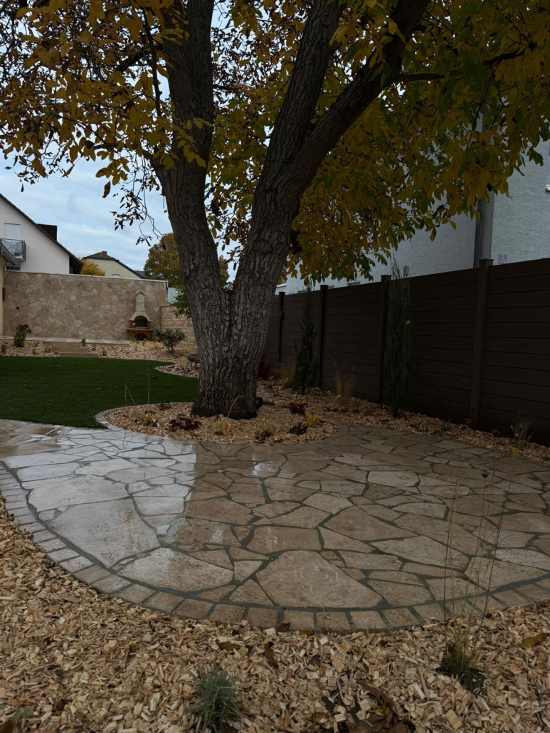 Alter Familien Apfelbaum beibehalten und ins neue Gartenbild integriert