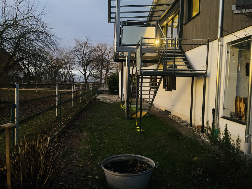 - Schaukel und Sandkaste wurde unter Terrasse integriert