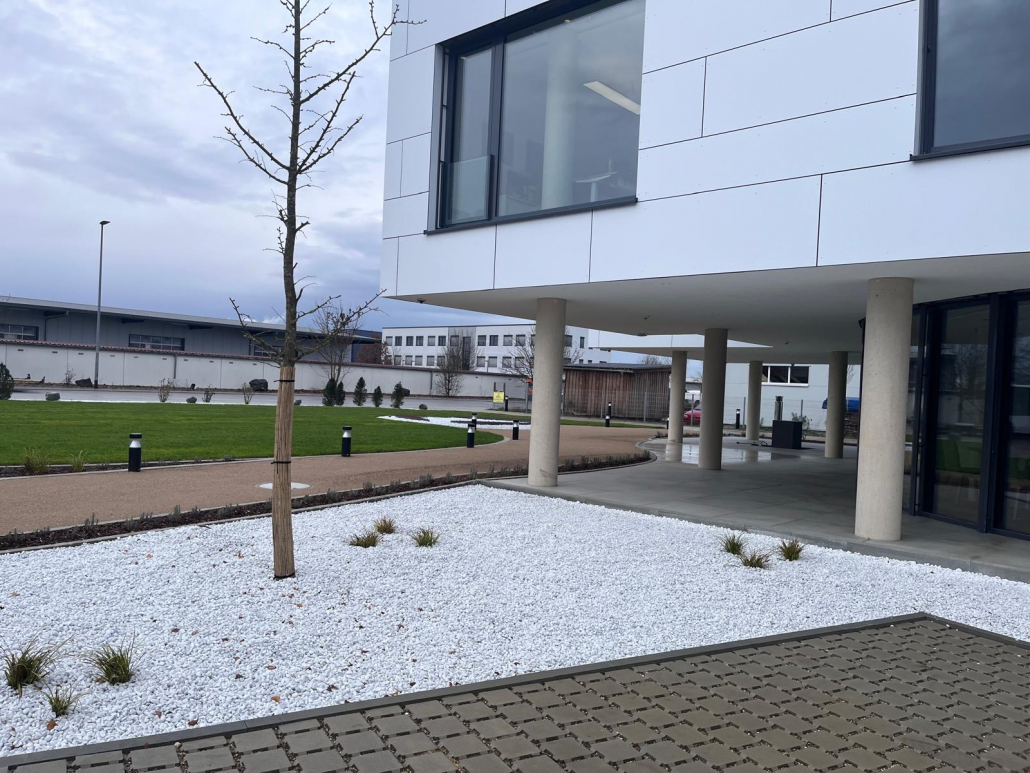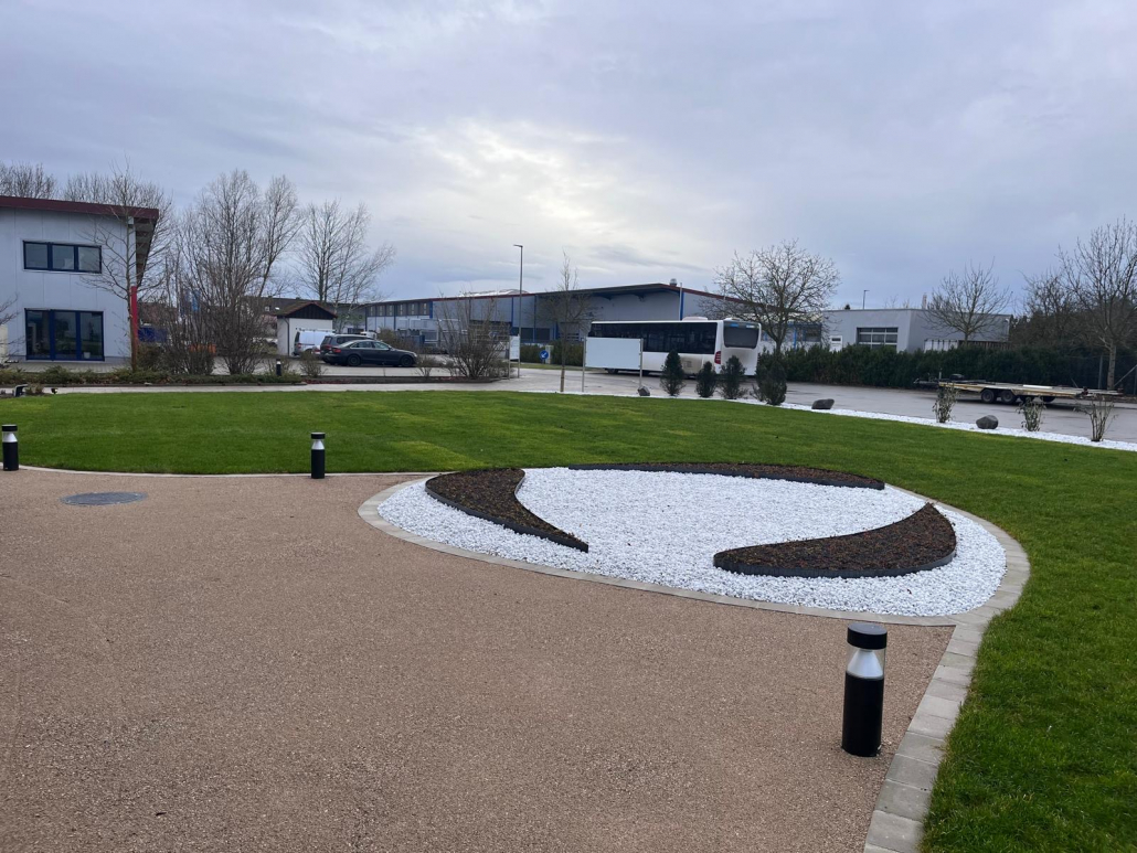 - Pflanzenauswahl wurde auf Kundenwunsch auf die Farben des Logos (Weiß/Grün) reduziert